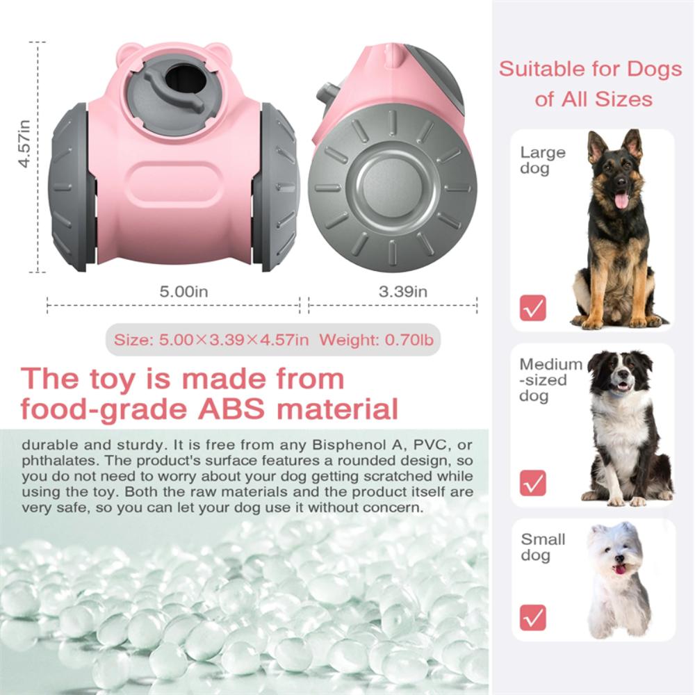 Keep your pet engaged and entertained with this interactive puzzle dog toy. This cylindrical toy is designed to dispense treats as your dog rolls it around, encouraging mental stimulation and healthy play.